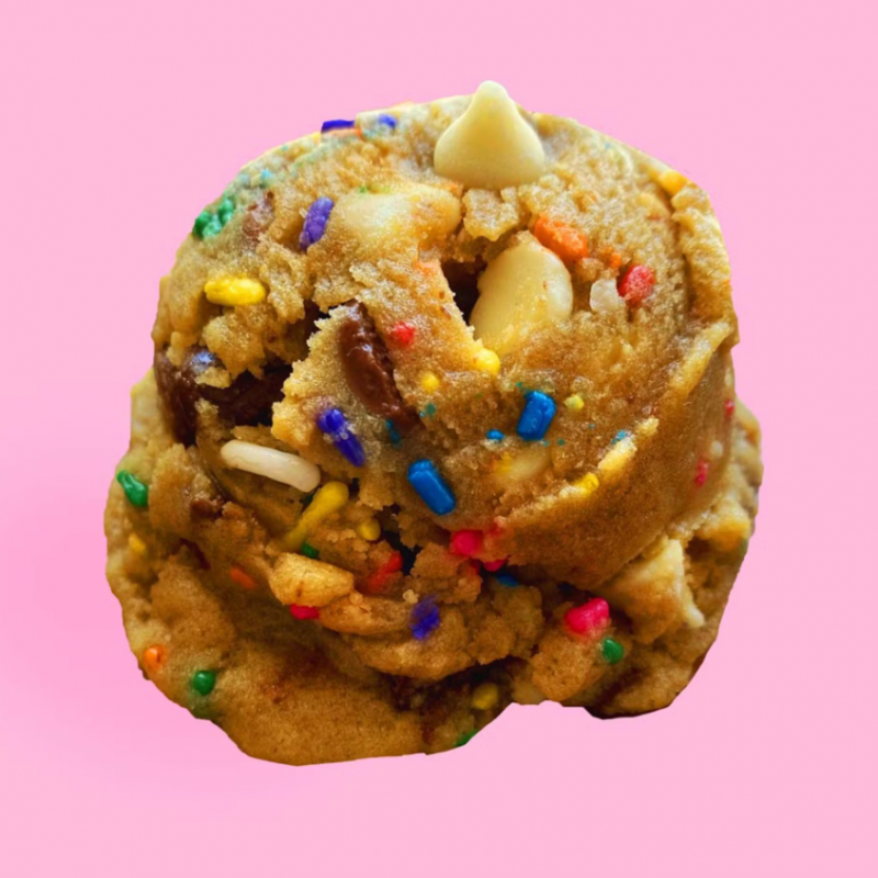 These melt-in-your-mouth cookies are made with top-quality organic ingredients and are loaded with rainbow sprinkles and dark & white chocolate chips, and stuffed with creamy chocolate hazelnut spread. Choose from a variety of "schmears” (frostings) to really take them over the top or to create your own cookie sandwiches at home! Each cookie weighs approx. 3.3 oz. and measures approx. 5"- 6"