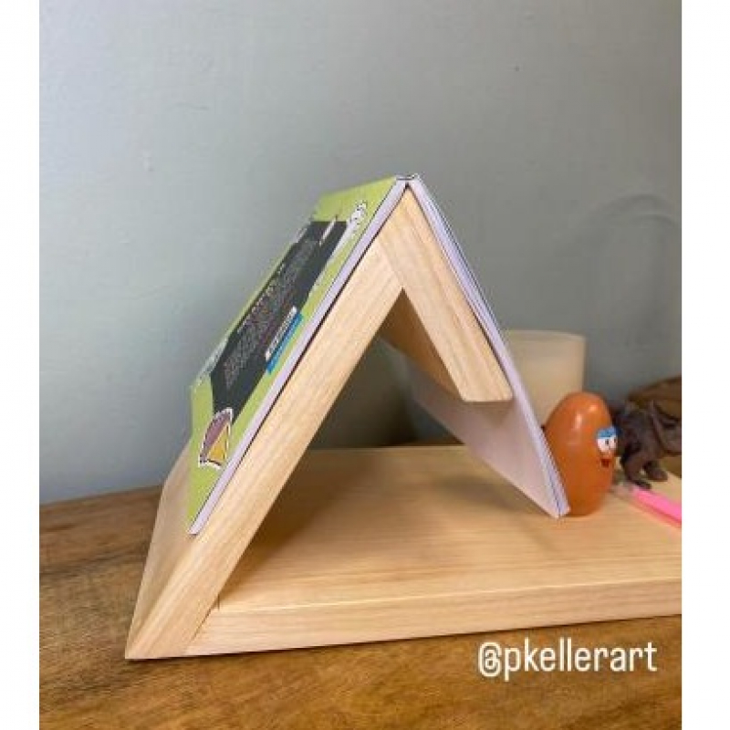 A beautiful book rest made from pine designed to hold your page at any moment.