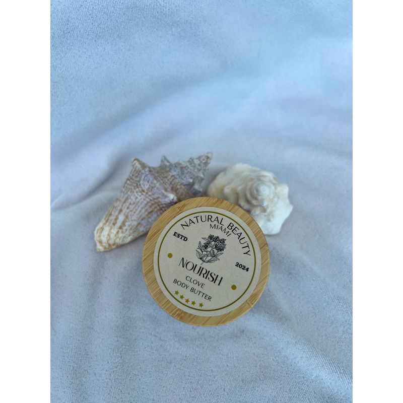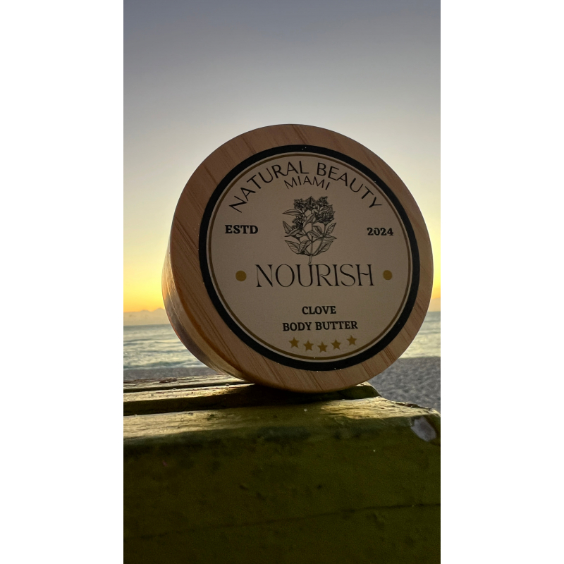 This body butter is naturally rich in essential fatty acids. Clove oil is known for its ability to reduce skin sagging and the appearance of fine lines, cellulite and stretch marks all while deeply hydrating your skin. Plus, it's able to boost blood circulation in your body, further improving its appearance.