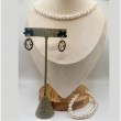 Material: Genuine freshwater pearls (necklace & bracelet), gold-plated metal accents, imitation pearls framed with rhinestones (earrings)