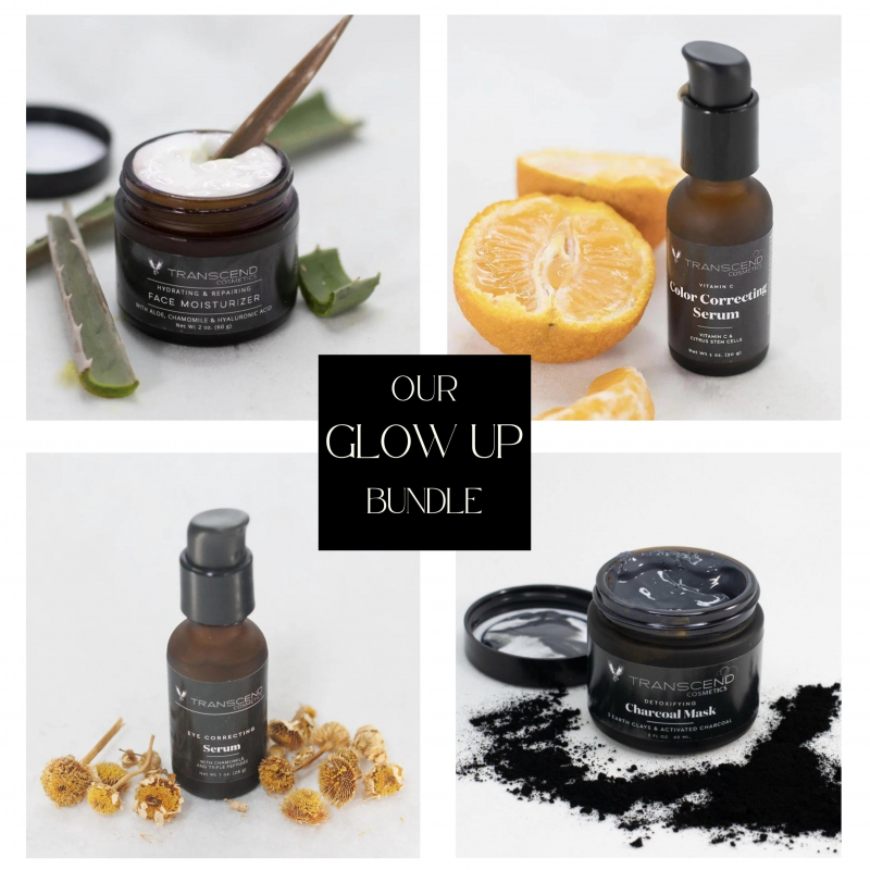 Transcend your skincare with our Glow-Up Bundle. This set includes 4 products: Vitamin C Serum, Detox Nightwear Cream, Charcoal Mask, and Hydrating Face Moisturizer.