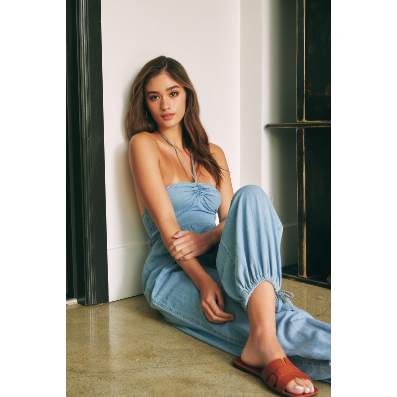This light wash jean-colored jumpsuit is the perfect piece to wear when you want to look put-together, with low effort. Ideal for wearing around house, going to a brunch or babyshower.