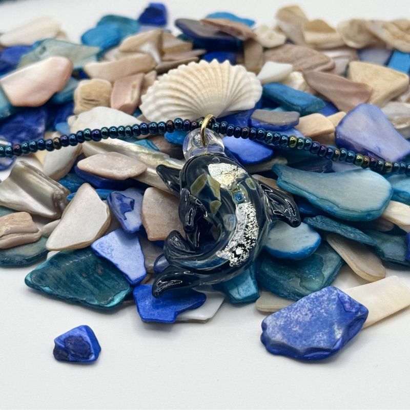 Do you feel like your style needs a splash of oceanic charm? Keep your look fresh and unique with the Navy Dolphin Lampworked Glass Necklace. Featuring a stunning dolphin motif crafted from navy-hued lampworked glass, this necklace is accented with shimmering details and finished with a sleek adjustable clasp. Both playful and elegant, it’s a timeless piece inspired by the beauty of the sea.