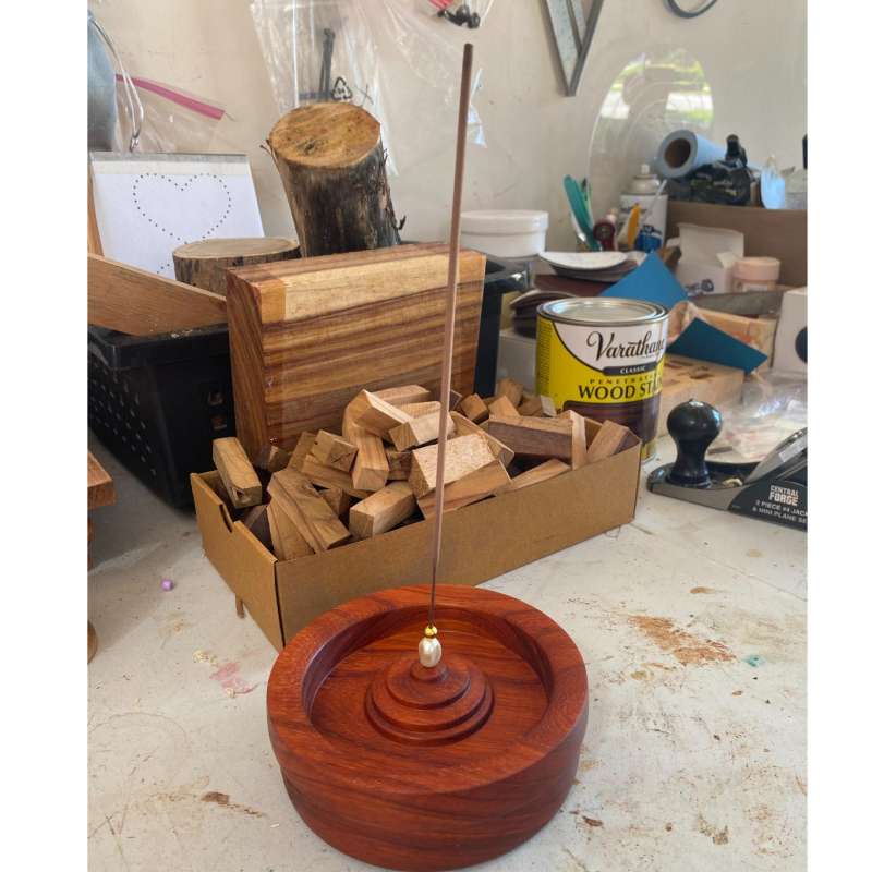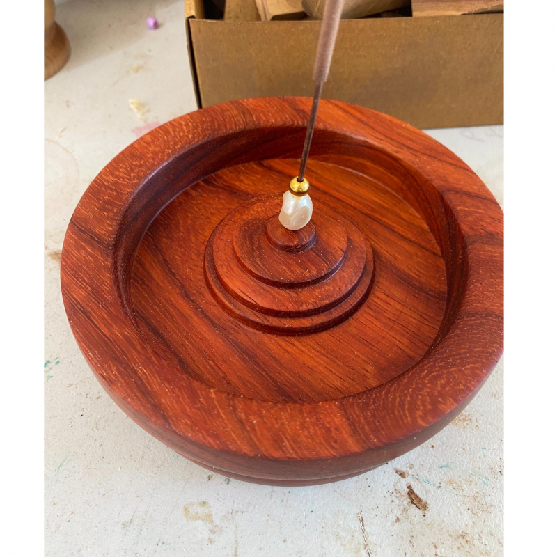 Paduk Incense Holder. A gorgeous red toned wood! This solid wood incense holder is a beautifully handmade piece that blends traditional craftsmanship with modern design. The natural grain of the wood adds warmth and elegance, making it an ideal decorative element for any space!