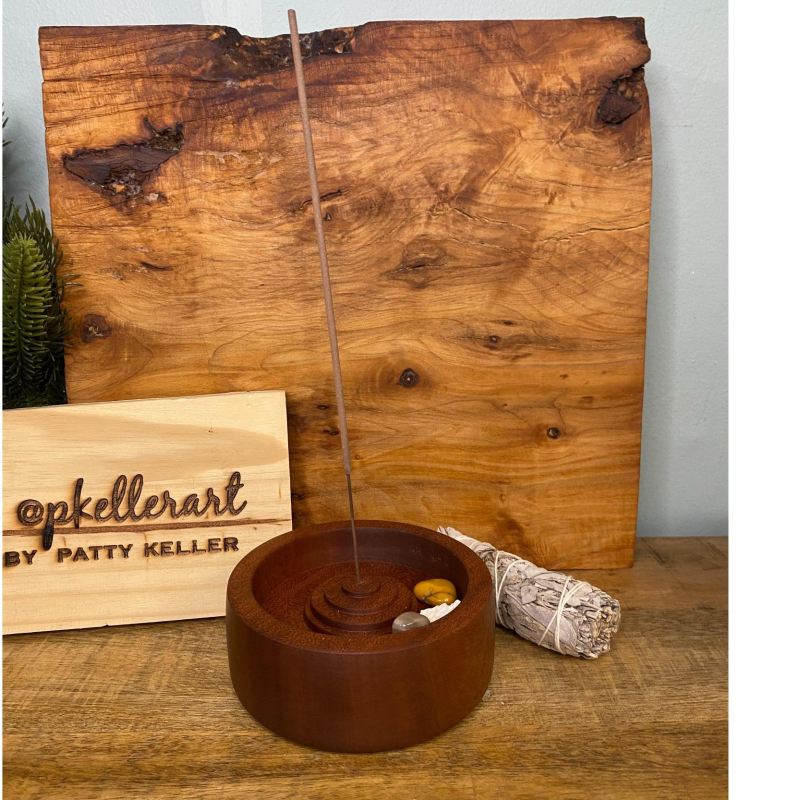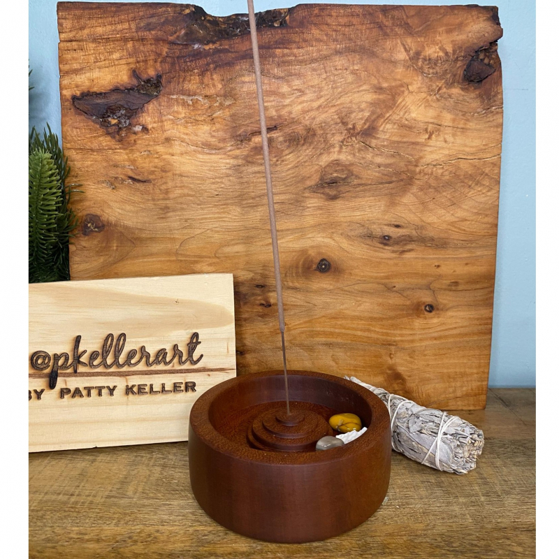 Hand turned incense holder designed by me. Made from a nice ribbon sapele wood.