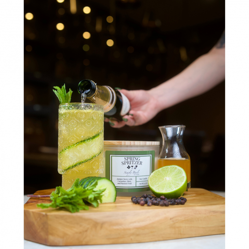 Reminiscent of a fresh spring breeze, the Spring Spritzer is a bold combination of herbal and fruity fragrances that will enlighten your senses. As a part of the gin line, the Spritzer has a base of juniper berry to imitate the main component in the liquor. It is elegantly blended with the fresh essence of cucumber, mint and a hint of passionfruit. This candle is one of our strongest fragrances and meant to be the star of the show wherever it is burned.