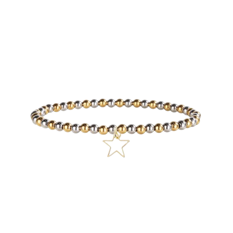 Reach for the stars with the Stardust Beaded Bracelet, a celestial-inspired piece designed for the free-spirited dreamer. Featuring a mix of gold and silver-toned beads, this effortlessly stackable bracelet is finished with a delicate star charm, adding just the right touch of Western whimsy and cosmic magic.