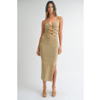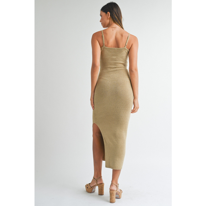 Embrace elegance and effortless style with this solid knit adjustable spaghetti strap bodycon midi dress. This stunning piece is designed to accentuate your curves and elevate your look with its unique details.