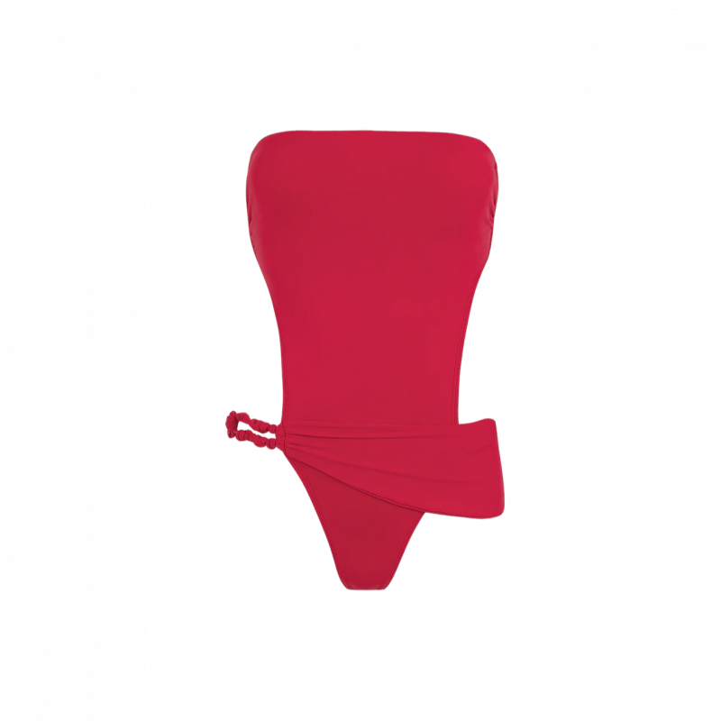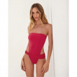 The ViX Holly One Piece is a strapless tube-style swimsuit with a striking design that exposes the sides and features an open back. It showcases a handcrafted knot detail on one side and a smooth foldover band that gently hugs the hip on the other. Complete with tie closures and a gold-plated ViX logo at the back, this suit offers a perfect blend of elegance and unique detail.