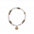 Black + Gold Heishi Beaded Bracelet w/ Leopard Marble Beads & 18k Gold Plated Disc Beads & Black Onyx Evil Eye Charm