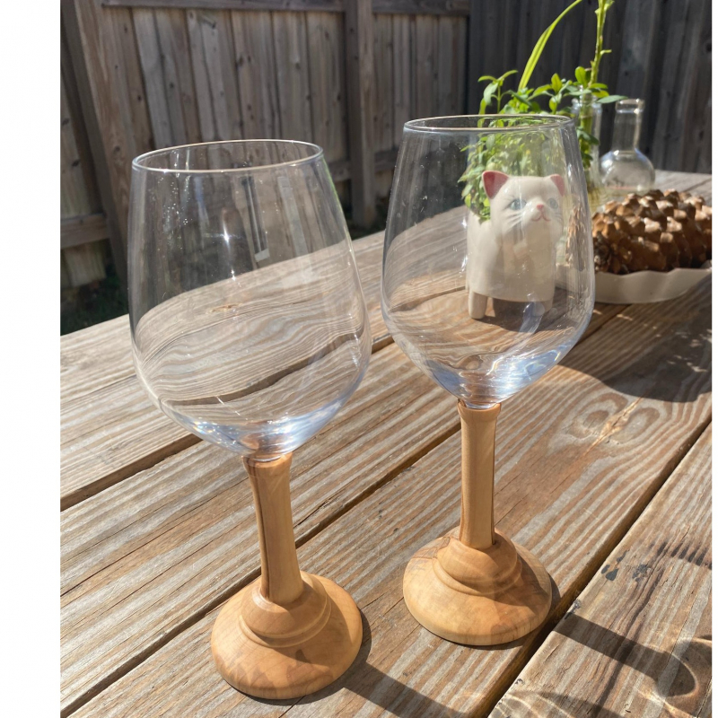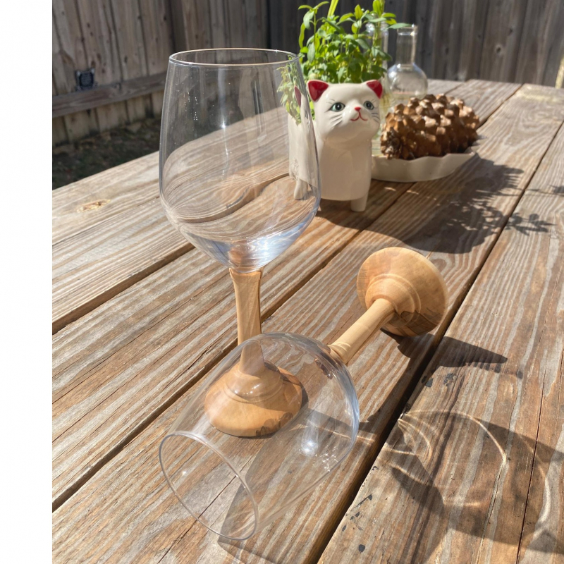 These hand turned, wood stem glasses are sleek, sturdy and perfect for any rustic kitchen or bar. Made from beautiful Spalted Ambrosia Maple Wood, these are4 truly unique pieces!