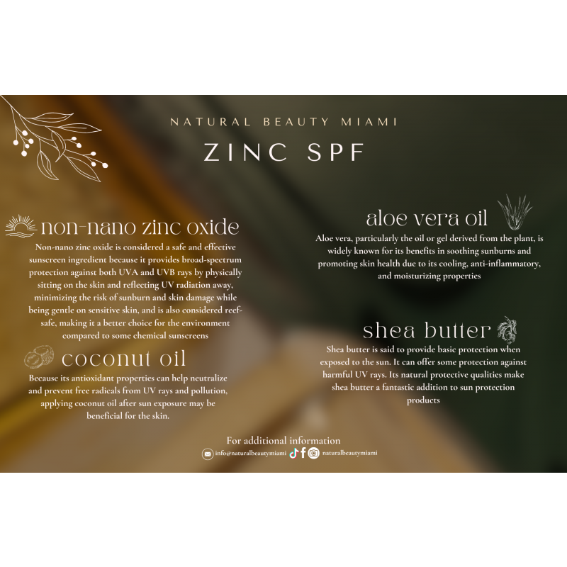 🌿This all-natural, kid-friendly Zinc SPF Balm offers effective sun protection while nourishing and soothing the skin. Formulated with non-nano zinc oxide, this balm creates a physical barrier against harmful UV rays without absorbing into the skin. Enriched with coconut oil, shea butter, and almond oil, it deeply moisturizes, leaving the skin soft and hydrated. Aloe vera oil and vitamin E oil provide additional soothing properties, making it perfect for sensitive skin. This balm is free from harmful chemicals and is safe for the whole family to use!